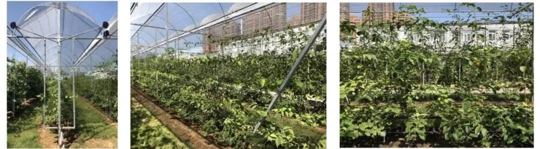 “多层垂直栽培”架式通常采用3m×2m行株距,柱间距6m,两相邻立柱间栽植3株,每亩栽111株,前期产量低。定植当年主要有以下两种整形方式。